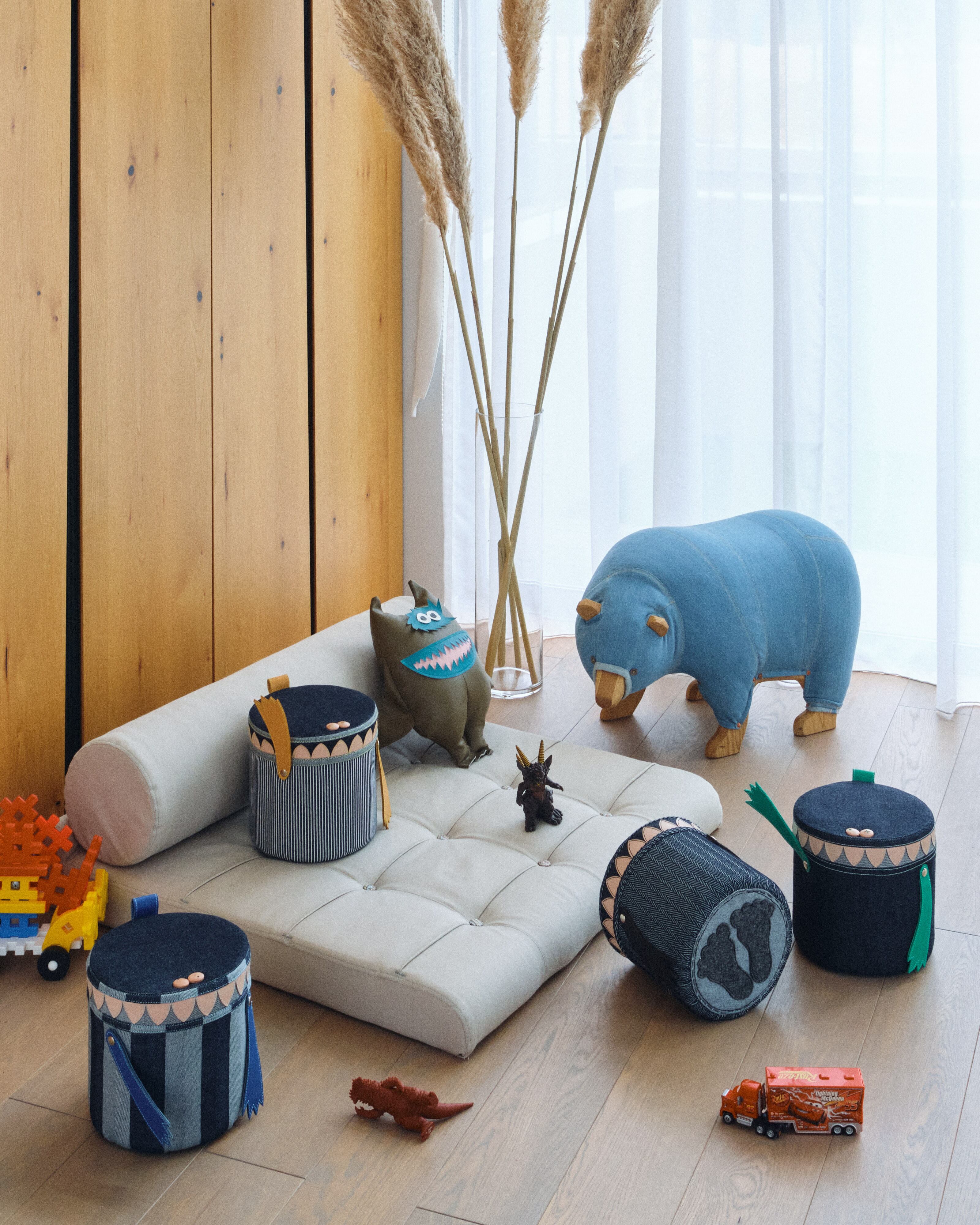 お子様のキッズチェアに使えることはもちろん、大人も座れます。ソファのひじ掛けにもいい感じです。二人で力を合わせれば踏み台にもなります。アウトドアにもついていったり、隠れてブックエンドにもなったり。是非、色んな使い方を試して楽しんでください。お部屋の至るとこにモンスターを。